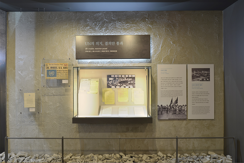 3년 1개월, 1,129일 전쟁의 시간. 한국전쟁실에서는 우리가 알고 있는 6·25전쟁의 흐름 속 UN과 대한민국 그 인연에 주목합니다. 대한민국의 자유를 수호하기 위해 부산항에 입항한 UN군이 낯선 땅에 처음 발을 딛던 생생한 모습, 적의 공격뿐만 아니라 추위와도 싸워야 했던 장진호 전투, 크리스마스의 기적 흥남철수작전, 전쟁고아 구출을 위한 유모차수송 작전 등 평화로운 오늘날이 있기까지 희생과 헌신으로 지켜낸 지난날을 우리는 기억할 것입니다.