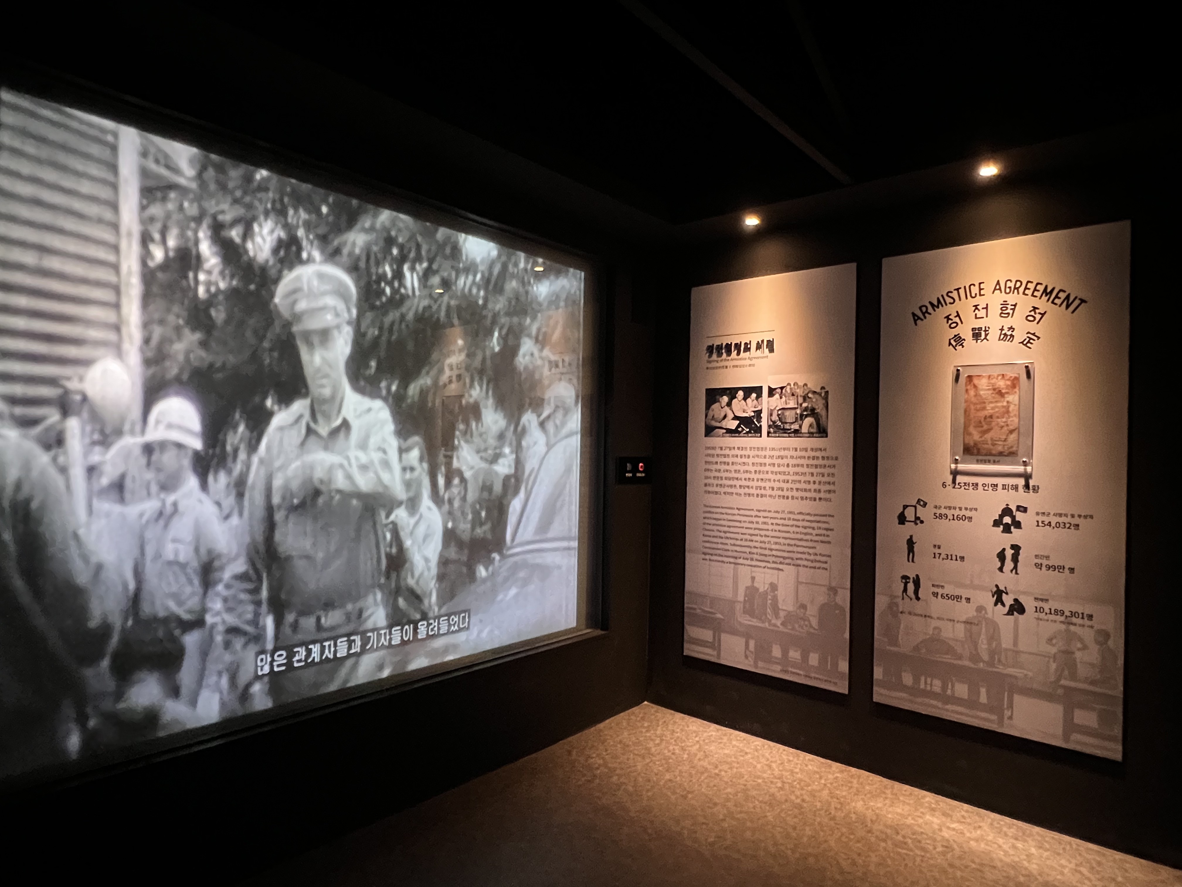 6·25전쟁 중단을 협의한 정전협정 문서로 총 5명의 서명이 들어가 있다. 협정 당시 미국의 해리슨, 북한의 남일, 중국의 팽덕회가 서명하였고 추후 북한의 김일성과 UN군 총사령관이었던 클라크가 서명하였다.