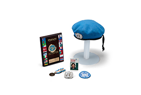 This was used at a time when the former professor Park Soon-hyang at Korea National Defense University (rank: Major, reserve) engaged in peacekeeping activities, who was dispatched as a Korean UN peacekeeper and the appreciation plaque granted later. This is a blue beret symbolizing UN peacekeepers, as well as an ID card, patch, etc. Donated by Professor Park Soon-hyang of the International Peace Activity Center of Korea National Defense University.