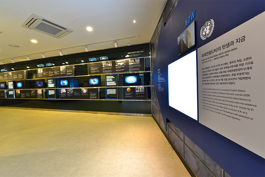 Established after the 2nd World War in 1945, the UN secured its ground starting from the Korean War and was officially launched on October 24th, 1945, making a contribution to global peace by performing missions like peacekeeping, disarmament, international cooperation, etc. In the UN International Peace Room, visitors can meet the activities of the United Nations and UN peacekeepers to address many challenges threatening humanity’s peace and safety and to understand UN through the history and goal of UN. The development and activities of Korea which emerged as one of the leading countries in the world with global citizenship from the poorest recipient country, emphasizes the importance of the current and future generations who will lead a sustainable future with the peace that was protected by the help of UN participating countries.